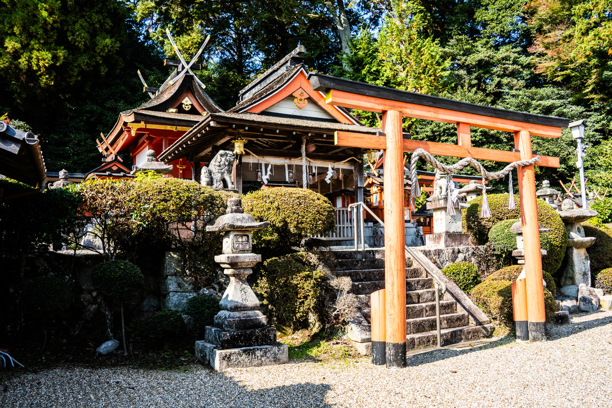20年ほど前に山中(さんちゅう:奈良盆地の東側にある笠置山地を指します)から奥(宇陀地域)にあるほとんどの神社を巡ったことがあります。そのとき最も美しと感じた神社で、境内の砂利は風紋トンボで丁寧に掃き清められています。春日造りの社殿も流麗で、以来何度か撮りに行っています。